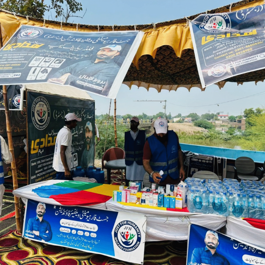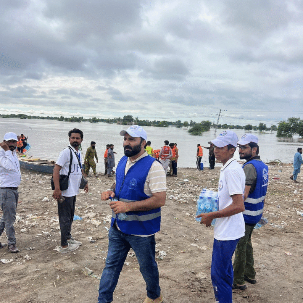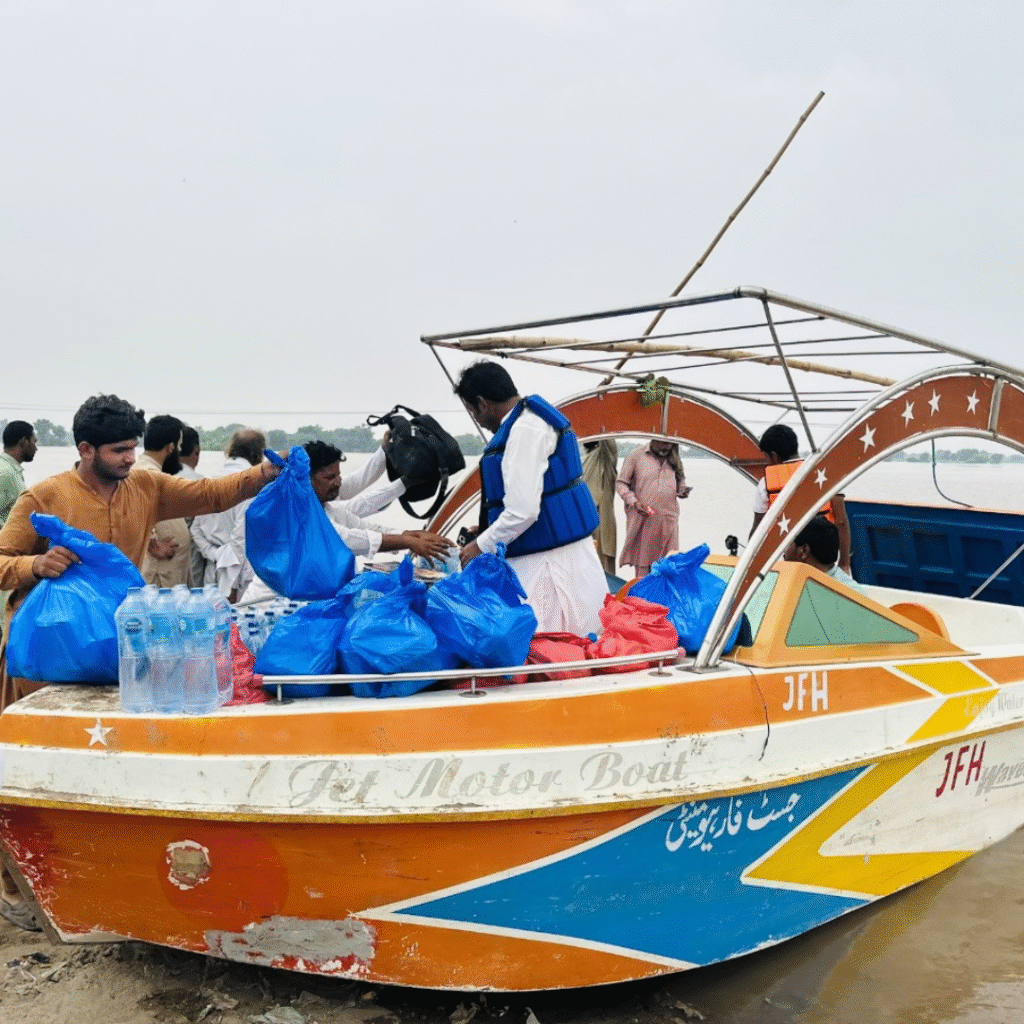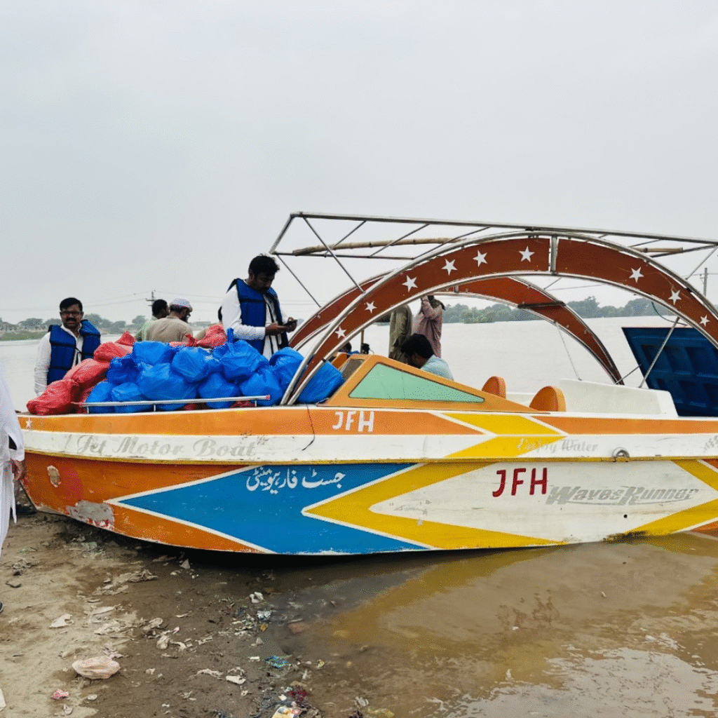 JFH Welfare Foundation has been at the forefront of flood relief efforts, ensuring no affected family is left behind. With the help of our rescue boats and dedicated volunteers, we reach remote areas, providing shelter, food, and first aid to those who lose everything in the disaster. Our mission is not just to provide emergency support but to give hope in moments of despair.